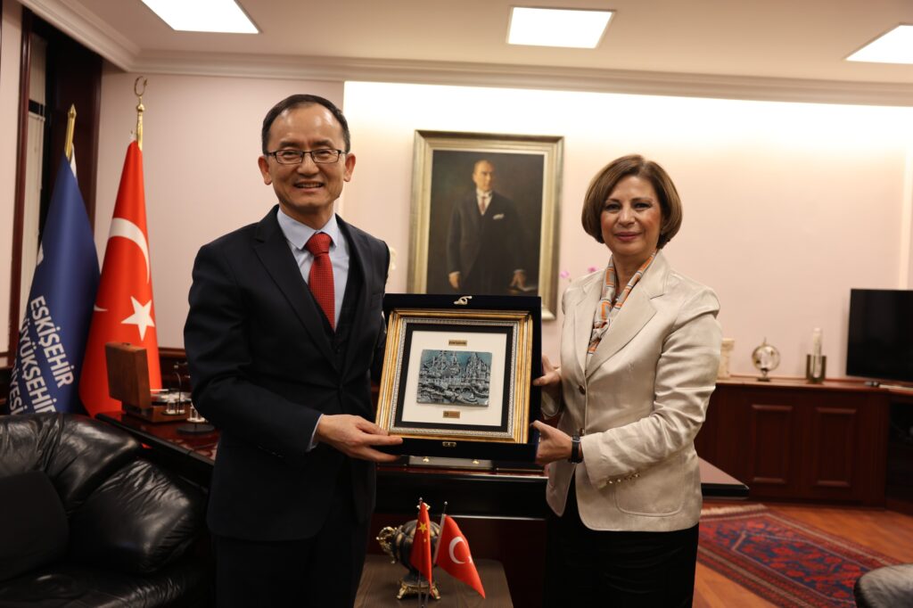 Eskişehir Büyükşehir Belediye Başkanı Ayşe Ünlüce, uluslararası ilişkiler kapsamında önemli diplomatik ziyaretlere ev sahipliği yaptı. Başkan Ünlüce, İstanbul Almanya Başkonsolosu Regine Grienberger ile Çin Halk Cumhuriyeti Ankara Büyükelçisi Jiang Xuebin’i makamında ağırladı. İlk olarak İstanbul Almanya Başkonsolosu Regine Grienberger ve beraberindeki heyetle bir araya gelen Başkan Ünlüce, görüşmede kültürel, sosyal ve ekonomik alanlarda geliştirilebilecek iş birliklerine açık olduklarını ifade etti. Ziyaretten duyduğu memnuniyeti dile getiren Ünlüce, Eskişehir’in uluslararası iş birliklerine her zaman hazır olduğunu vurguladı. Başkan Ünlüce daha sonra Çin Halk Cumhuriyeti Ankara Büyükelçisi Jiang Xuebin ve beraberindeki heyeti ağırladı. Eskişehir’de olmaktan büyük mutluluk duyduğunu belirten Büyükelçi Jiang Xuebin, “Eskişehir’de kadın bir belediye başkanı ile bir araya gelmek son derece gurur verici. Kentiniz son derece çağdaş ve gelişmiş bir şehir. Çalışmalarınızdan dolayı tebrik ederim.” dedi. Gerçekleşen görüşmede karşılıklı iyi niyet mesajları iletilirken, Başkan Ünlüce nazik ziyaretleri için Büyükelçi Jiang Xuebin’e teşekkür etti. Ziyaretler, karşılıklı hediye takdimleri ile sona erdi.