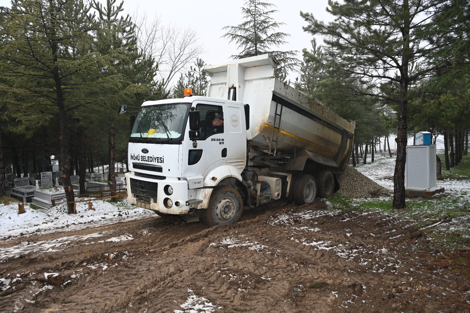 İnönü Belediyesi, ilçe genelinde altyapı ve üstyapı çalışmalarına aralıksız devam ediyor. Bu kapsamda Fen İşleri ekipleri, İsmetpaşa ve Yenice Mahalle mezarlıklarında stabilize malzeme serimi yaparak yolları daha düzenli ve kullanışlı hale getirdi.