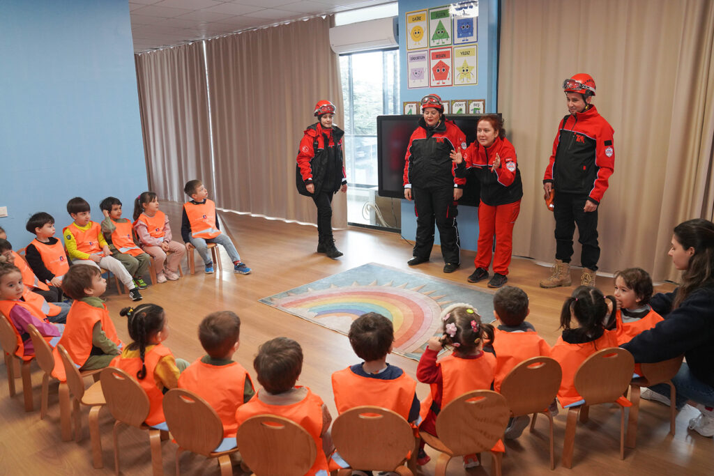 Program kapsamında, afet anlarında hayati önem taşıyan “Çök–Kapan–Tutun” hareketi uygulamalı olarak gösterildi. Yaş gruplarına uygun şekilde planlanan temel afet farkındalık eğitimiyle, çocukların doğru davranış biçimlerini erken yaşta öğrenmeleri hedeflendi.