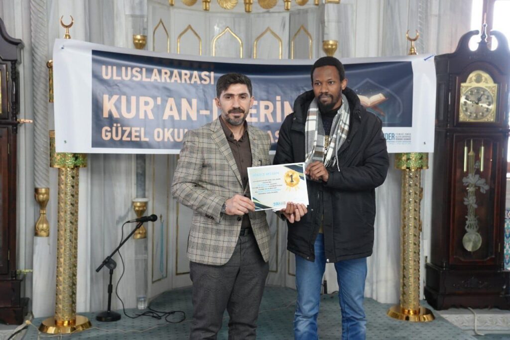 1. olan Ismael Moussa Manou (Nijer)’a hediyesi, AK Parti Tepebaşı İlçe Başkan Yardımcısı Mehmet Çakmak tarafından takdim edildi.